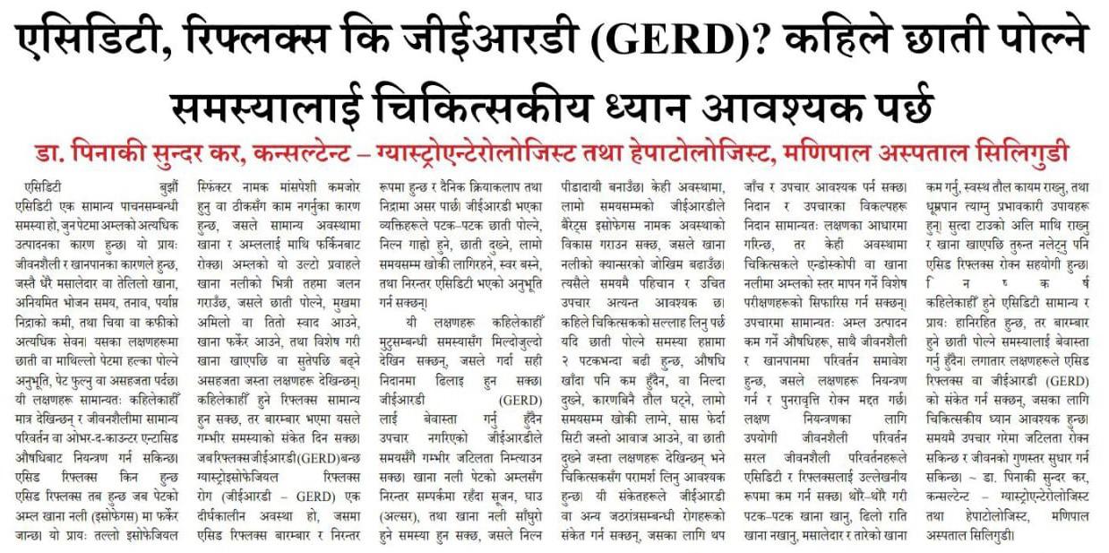 Gastroenterology Article by Dr. Pinakee Sunder Kar( English)